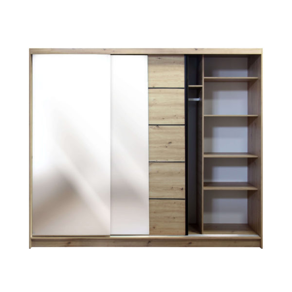 Da li ste umorni od stalnog traženja odjeće u haosu vašeg ormara? Predstavljamo vam Klizni ormar Davos VIII, beli spasitelj vašeg garderobera! Sa dimenzijama od 215 cm visine, 250 cm širine i 58 cm dubine, ovaj ormar je kao superherojski plašt za vašu spavaću sobu.